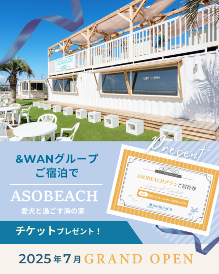 &WANグループに"ご宿泊"で【ASOBEACHプラン無料】となります